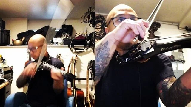 Earl Maneein of Resolution15 gave an exclusive lesson for the song "Mr. Dark" to Guitar World here: http://www.guitarworld.com/exclusive-electric-violin-lesson-video-resolution15-mr-dark